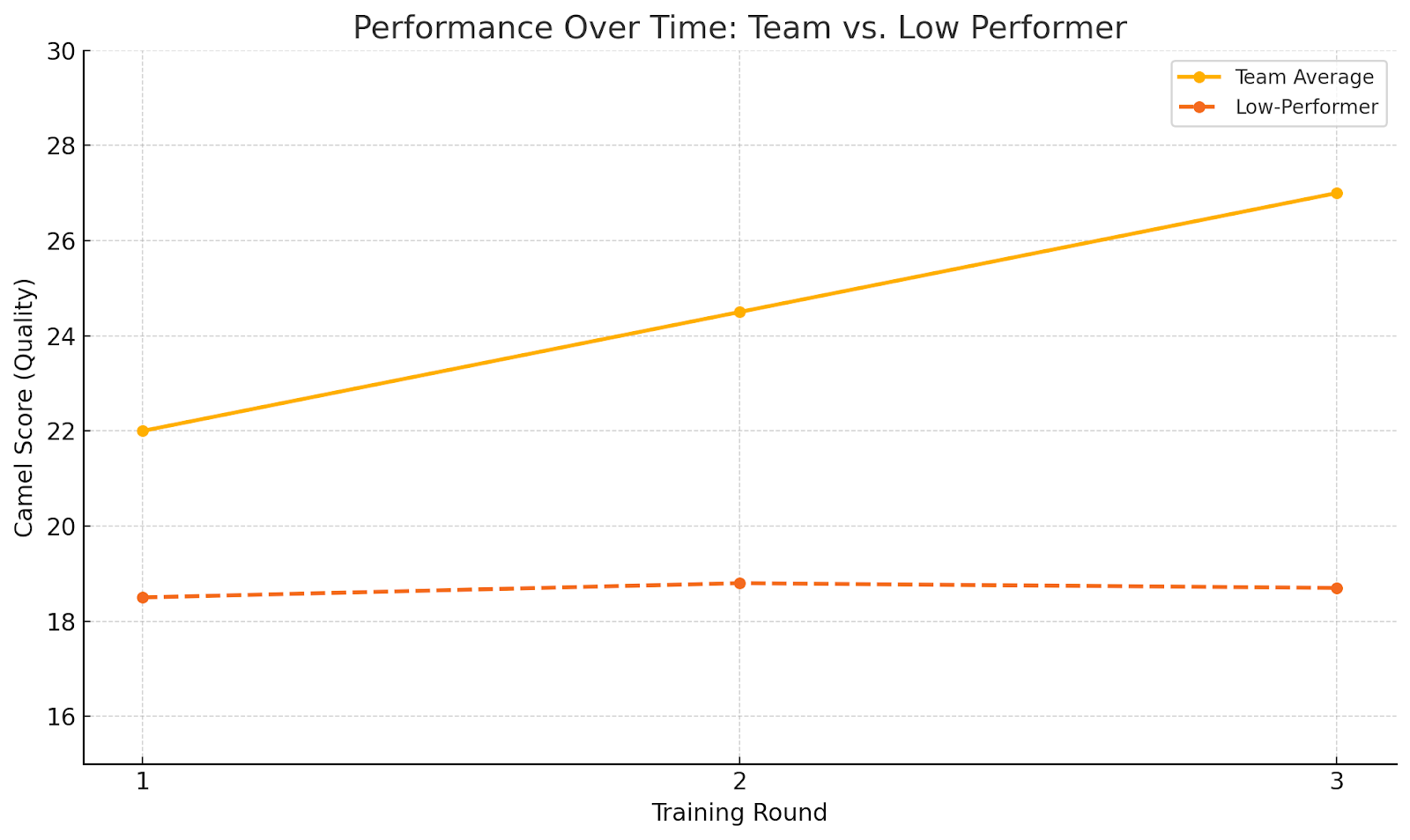 Profile: These reps started off average—neither standouts nor risks. But their progress was consistent across rounds.